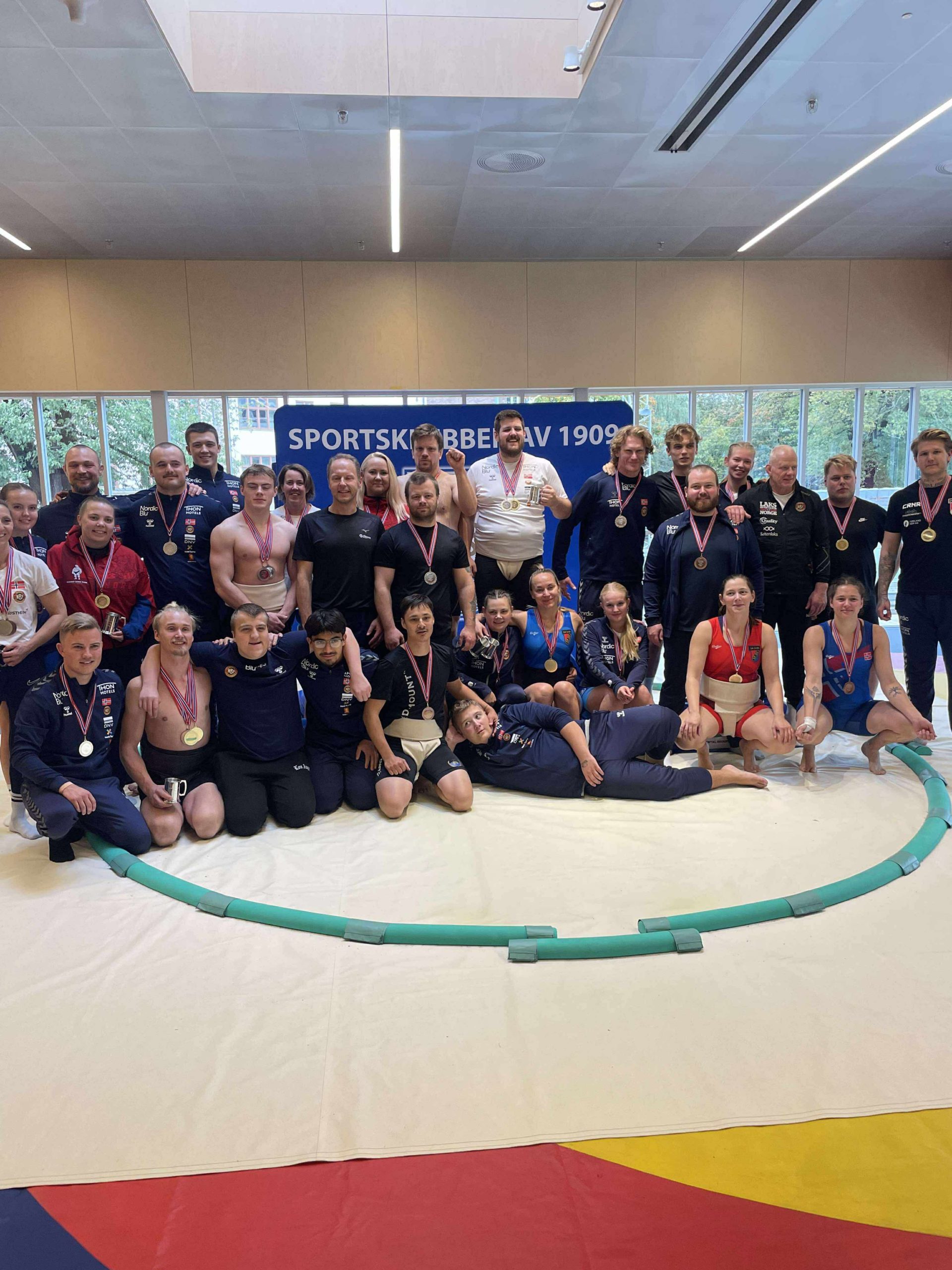 Den Europeiske sumosesongen 2025 ble avsluttet denne helgen med et arrangement som betyr mye for norsk sumobryting: tredje og siste runde av Europacupen, på hjemmebane i Oslo. Inne i Sportsklubben av 1909s splitter nye lokaler på Dælenenga ble det hele avviklet med ringen under naturlig lys fra vinduet i taket, rammet inn av en fin gruppe publikummere, samt et VIP-bord bestående av Idrettspresident Zaineb Al-Samarai, Brytepresident Anette Kure, og Japans ambassadør til Norge Akira Sugiyama med stab. Til tross for en liten sykdomsbølge og ekstremværet Amy hadde Norge 34 utøvere i aksjon, en ny rekord for Sumolandslaget i en ren seniorturnering, og de norske tok imot 9 tilreisende utlendinger fra 5 nasjoner. Det ble med andre ord en stor dag for norsk sumobryting, da Sumolandslaget fikk vist fram at i Norge kan vi stille et sterkt seniorlag i alle klasser, og at sumobryting er en underholdende idrett å både delta i og se på. Sumolandslagets #29, hovedtrener Sigmund Røtnes Widerberg, har følgende å rapportere fra arrangementet: